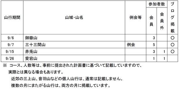 山行記録一覧を更新しました。(2025年9月分を追加)|新着情報|湖南岳友会のホームページ