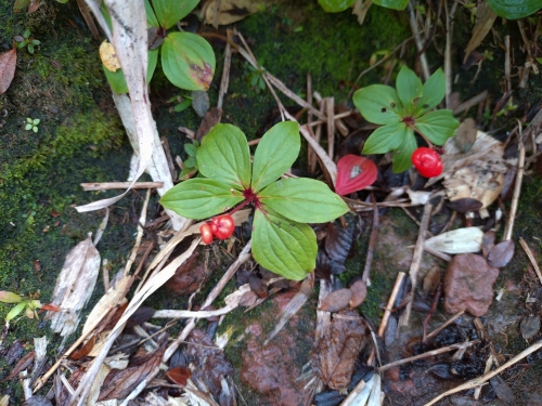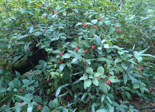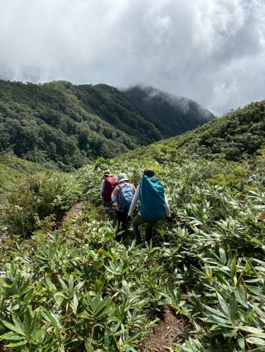 昨日までの雨の後で、今日は湿度が高く蒸し暑い! 汗がしたたり落ちます。ここではゆっくり休憩してさあ、赤兎山へ 道中、樹林帯で眺望はないけれど、足元にはまだ花が残っていました。