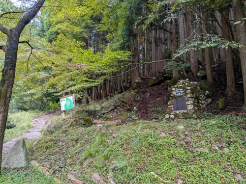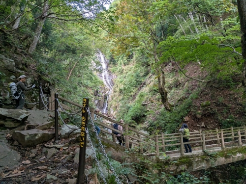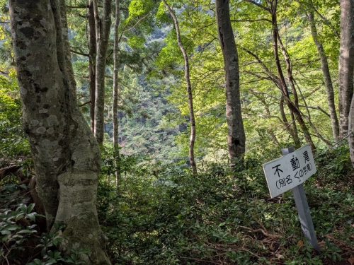 不動滝と書かれていますが、木々が生い茂りよく見えませんでした。