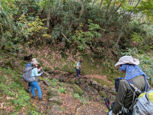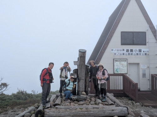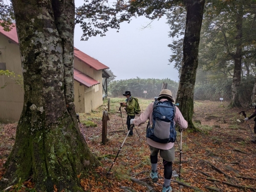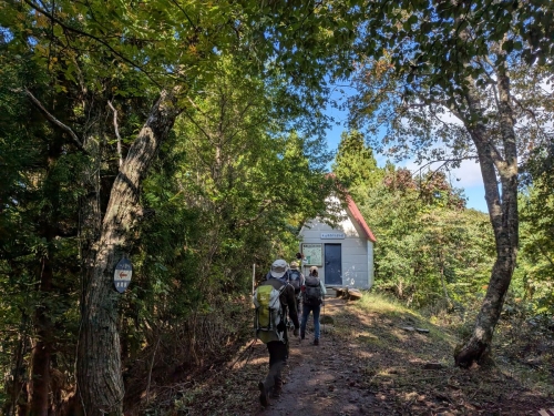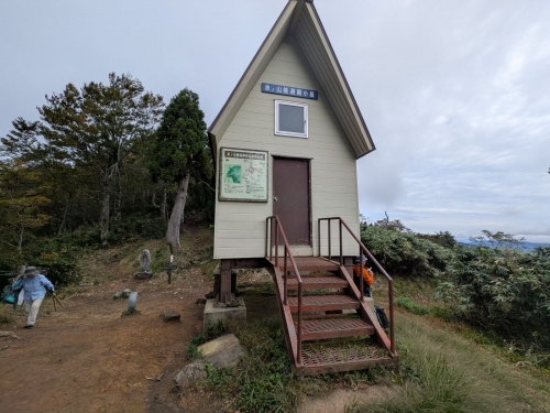 山頂避難小屋で昼食してから下山開始です。避難小屋の近くに新しいトイレができてました。