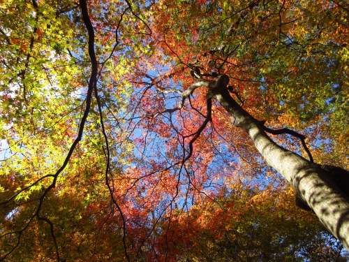 見た感じはもう一つでしたが、写真を撮ると青空と赤・黄のコントラストがきれいです。