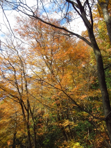 大文字山頂上に登ってから北面に入り幻の滝へ。ここにも大きなモミジの木が頭上を覆っています。