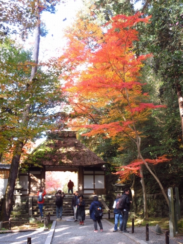 法然院に降りると急に人が多くなりました。観光寺院ではないので以前は参拝者がほとんどいなかったのですが、最近は情報が広がっているようで外国の方も含めて賑わっています。山門越しの紅葉を撮ろうと多くの方がカメラを構えています。