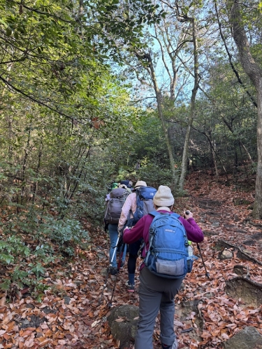 とにかく登って下りて 落ち葉を踏みしめながら歩きます