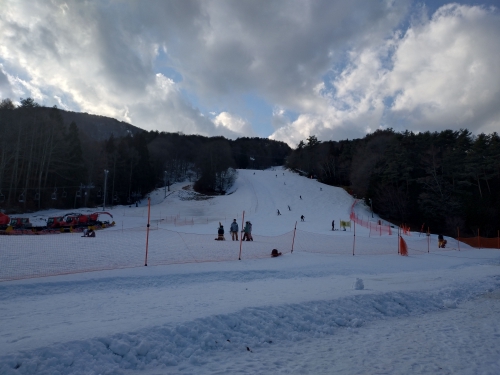 少し雲行きが怪しいけれど、スキー場はナイターもやっているそうで、盛況でした。