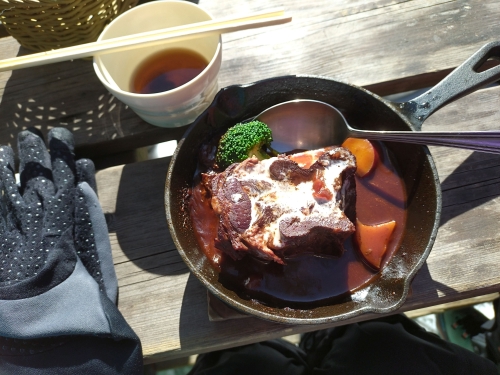 そして、見つけてしまいました! ヒュッテ入笠のランチ 牛タンシチュー(名物みたいです)
