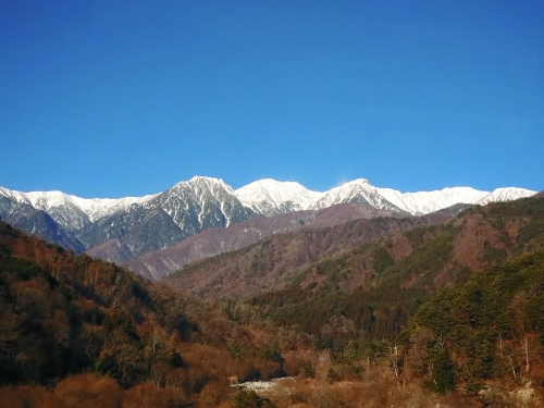 車窓より中央アルプス(駒ケ岳スマートインター近く)あれ、黄砂はどこ行った??