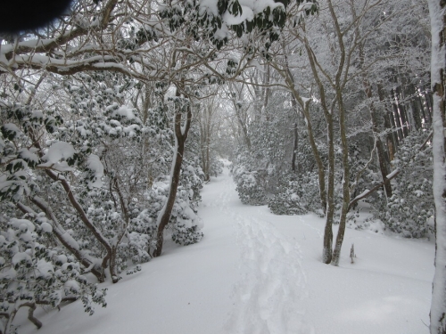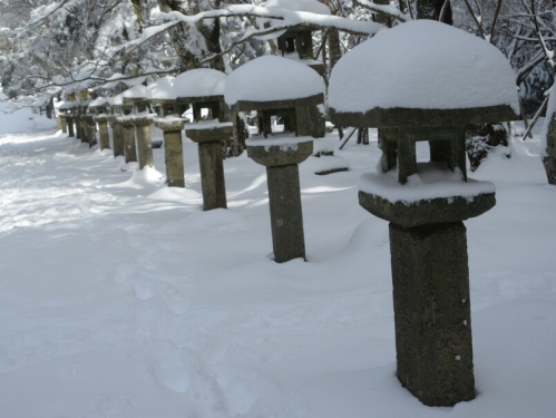 石灯籠にも雪が積もっています。