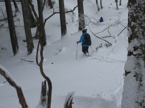 同行者はせっかく持ってきたスノーシューをはいて、トレースのない雪上を歩いています。