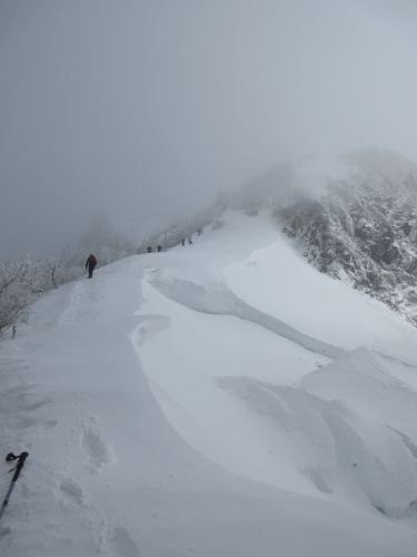 剱ヶ峰山への最後の登りです。寒さと風で大変でしたが、後で見るとなかなか良い感じです。